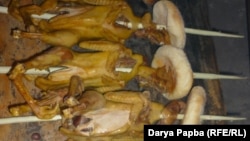 Поздно вечером, когда пища уже готова, весь род собирается в святилище и зажигает свечи. Самый старший в роду разливает всем вина, и начинается моление: люди обращаются к богу и просят его о благополучии семьи, о богатстве и о здоровье. Затем они пробуют жертвенную пищу (печень, сердце и лепешку), которая нанизана на фундуковые палки. И когда свечи догорают, возвращаются за праздничный стол домой.