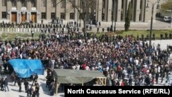 Нескольких активистов задержала полиция. Остальных разойтись уговаривали и силовики, и сам Битаров. Когда договориться не удалось, ОМОН начал выдавливать митингующих с площади.