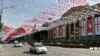 Завершилось шествие в парламенте. Вдоль его фасада депутаты партии «Лело» развернули гигантские флаги Грузии и Евросоюза.