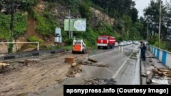 Ливневые дожди в Гагре в среду утром повредили участок республиканской трассы, несколько домов и гостиницу и создали транспортный коллапс, который на железной дороге все еще не преодолен.