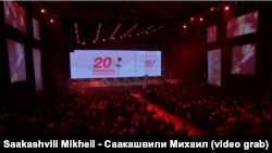 На мероприятии было зачитано письмо находящегося в заключении основателя «Национального движения», непосредственного участника «Революции роз» - бывшего президента Михаила Саакашвили: