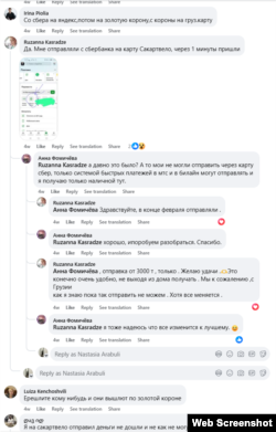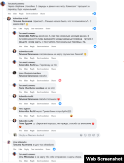В Facebook-группе «Русскоговорящая Грузия» 15 апреля Давид спрашивает: «Ребята кто нибудь отправлял деньги через сбербанк онлайн в Грузию деньги по номеру карты?»