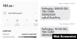 Следующие 151 лари от того же друга из России Дато получил 6 мая. В подтверждении транзакции отправителем был указан опять другой человек - на этот раз Александр Стельмах. После проверки мобильного приложения TBC выяснилось, что и у Икрама Шахирова, и у Александра Стельмаха открыты расчетные счета в грузинских банках, хотя ни Дато, ни человек, который перевел ему деньги из России, не знают, кто эти люди.